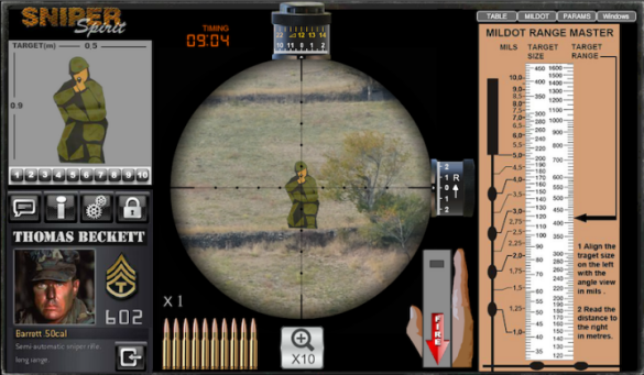Un simulateur de tir à longue distance extrêmement réaliste. Tous les paramètres météo devront être pris en compte afin d’effectuer un tir précis. La distance, la température, la pression atmosphérique, le vent et sa direction devront êtres calculés comme dans la réalité. Par de nombreux exercices, vous pourrez vous perfectionner dans tout le travail de calcul et partager avec cette nouvelle communauté de passionné de tir, le même esprit qui nous anime.