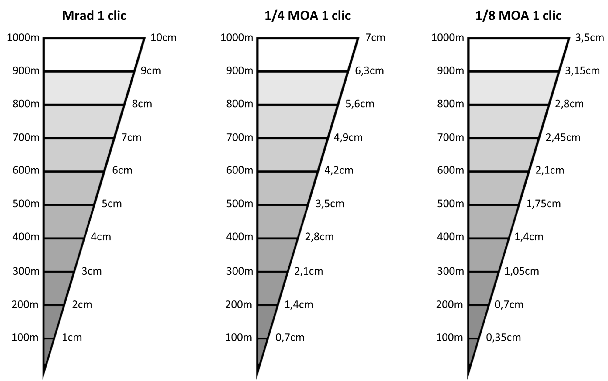 J'ai une lunette de marque Vortex Optics Razor® HD Gen II 4.5-27x56 d'après la notice elle a un réglage maximum d'élévation de 28,5 Mrad. C'est théorique car cette valeur d'élévation ne tient pas compte du zérotage de l'arme en fonction de l'entre-axes lunette/canon. Elle est quand même un indicateur pour le choix de votre lunette.