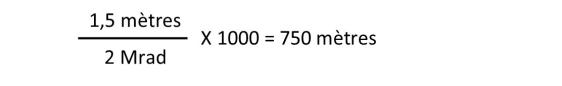 Exemple, une cible qui mesure 1,50 m, et qui est estimée par le tireur à 2 Mrad dans son réticule, se trouve, à 750 mètres de lui.