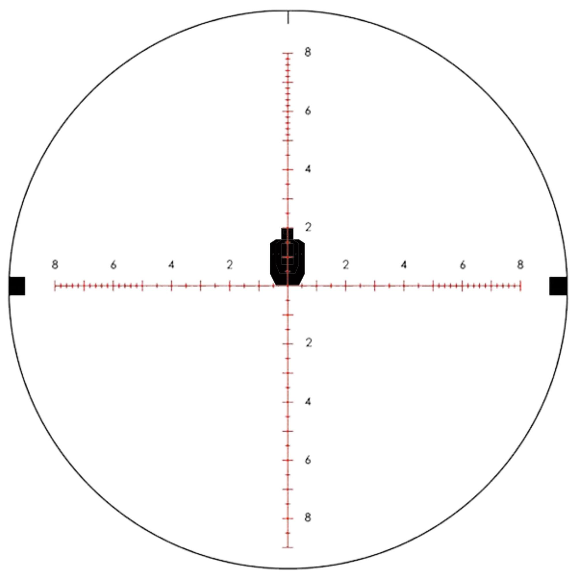 Pour le premier plan focal nous pouvons mesurer une cible à tous les niveaux de grossissement, le réticule variant de taille en même temps que la cible.